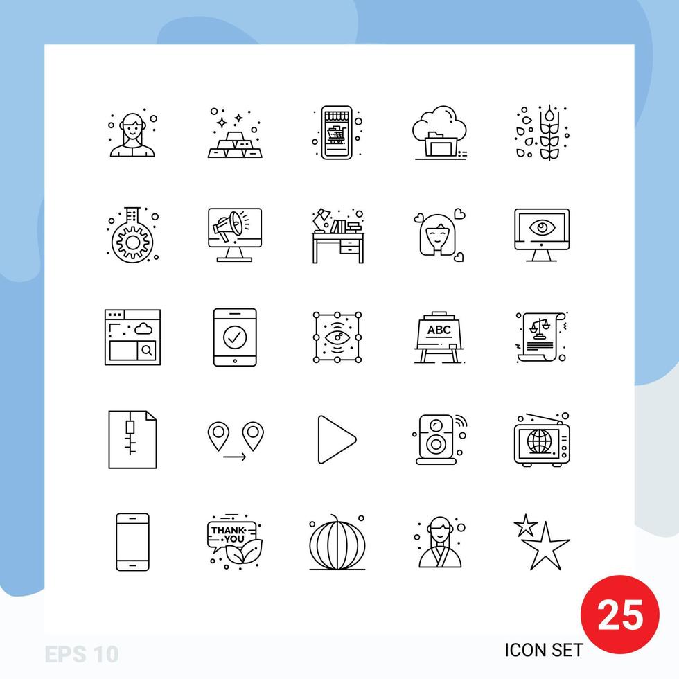 25 líneas universales establecidas para aplicaciones web y móviles cereales comparten datos de compras móviles archivan elementos de diseño vectorial editables vector