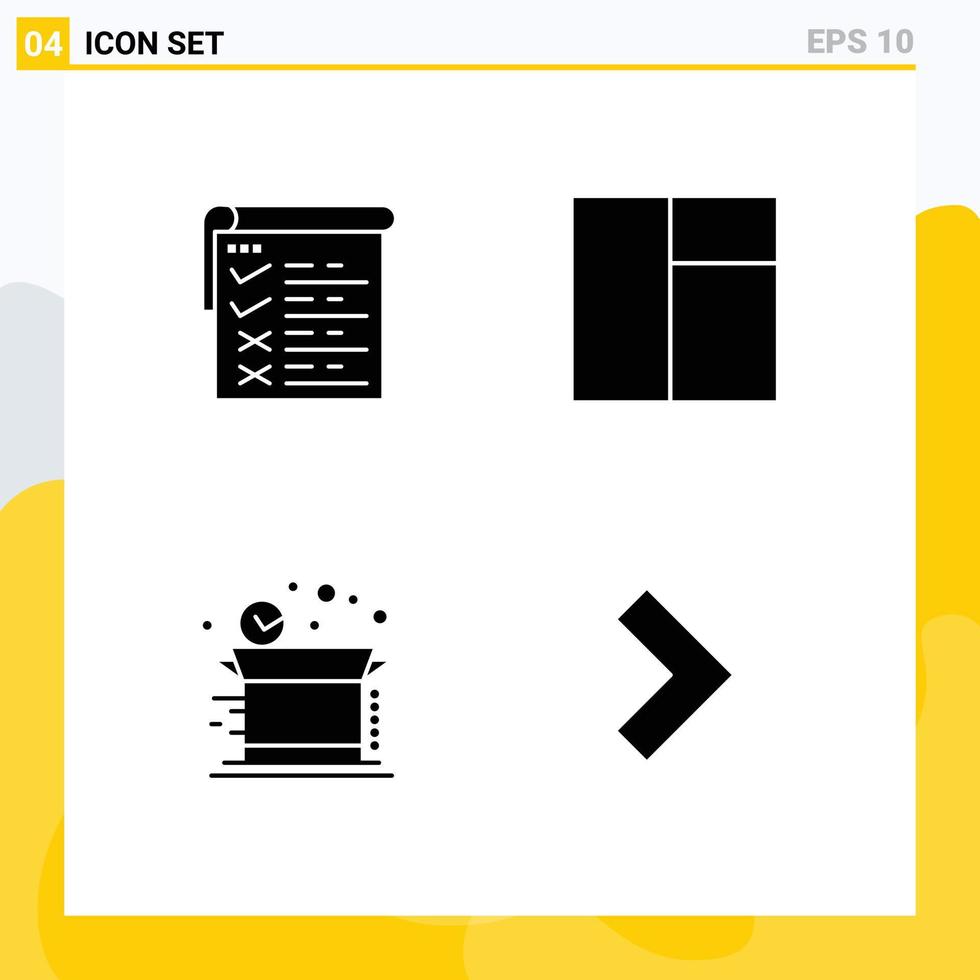 conjunto de glifos sólidos de interfaz móvil de 4 pictogramas de lista de verificación envío qa cuadro elementos de diseño vectorial editables a la derecha vector