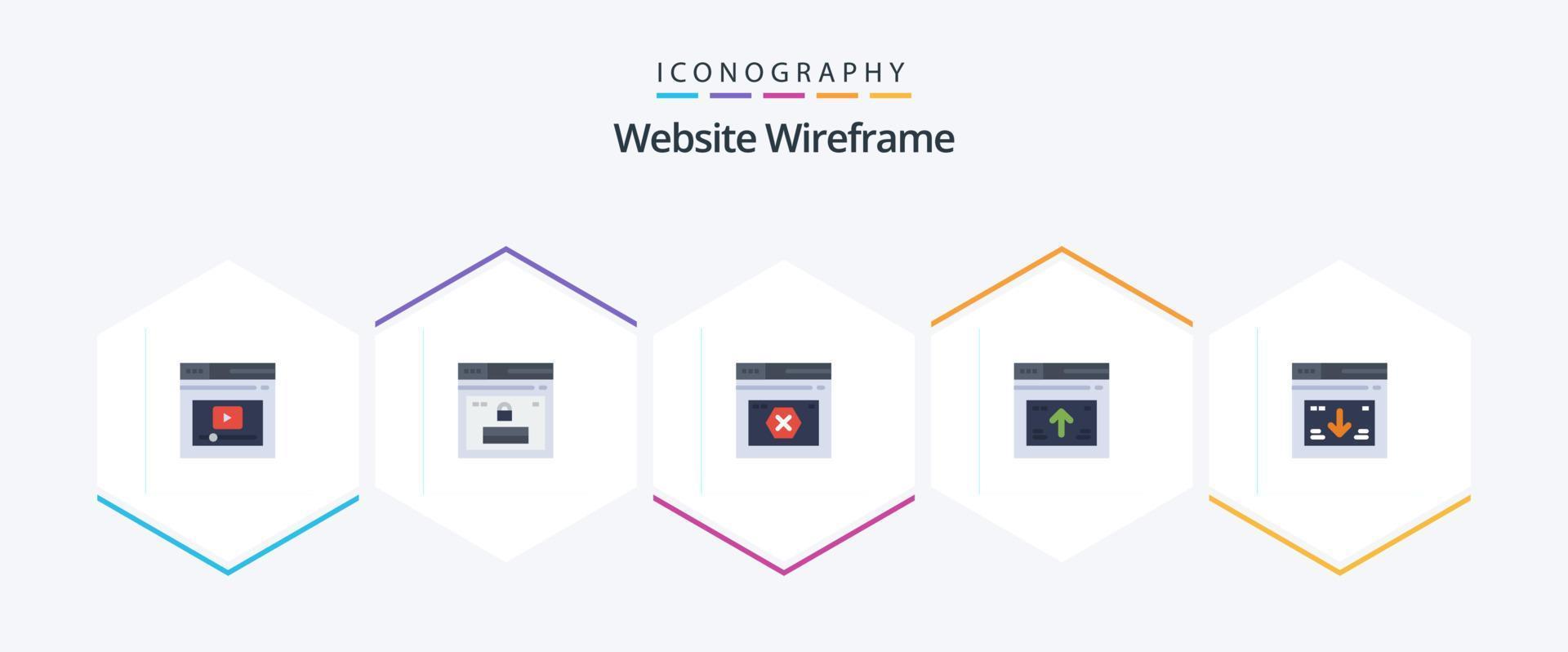 sitio web estructura alámbrica 25 paquete de iconos planos que incluye web. Internet. sitio web. error. web vector