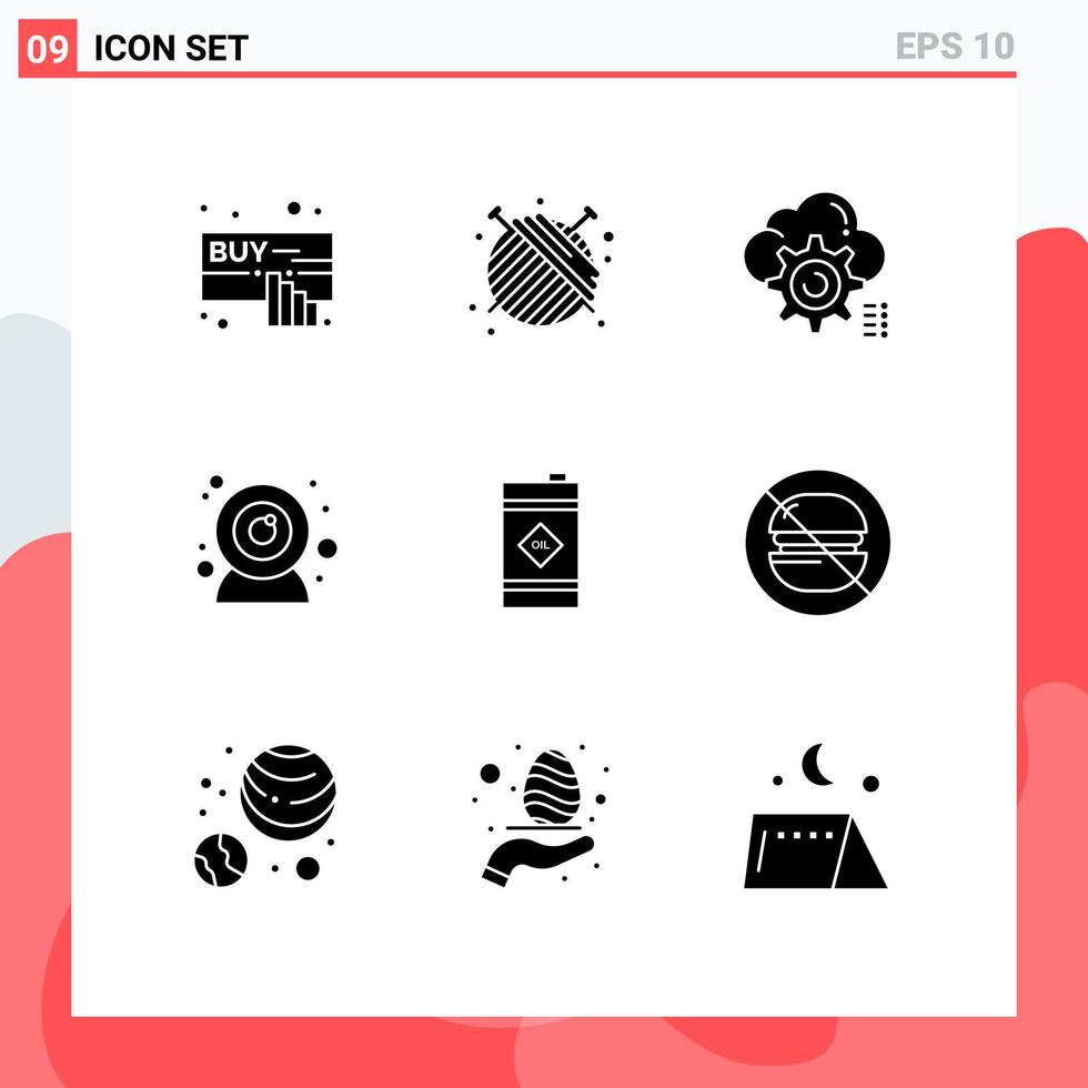9 concepto de glifo sólido para sitios web móviles y aplicaciones aceite cámara web equipo cámara web configurar elementos de diseño vectorial editables vector