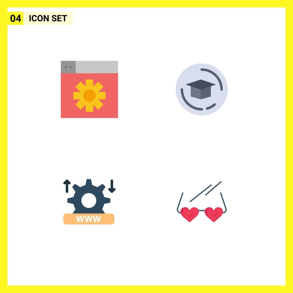 4 iconos planos universales establecidos para aplicaciones web y móviles configuración web gorra internet amor elementos de diseño vectorial editables vector