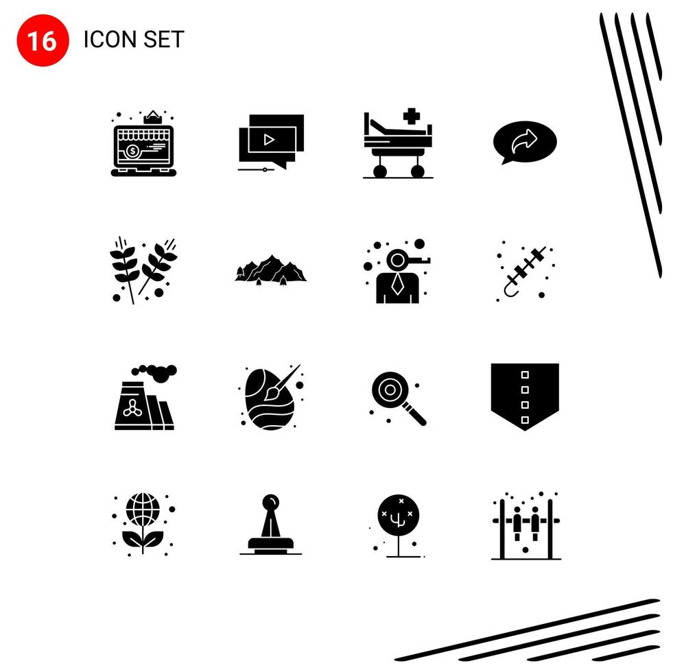 conjunto de pictogramas de 16 glifos sólidos simples de flecha de presentación derecha agrícola elementos básicos de diseño de vectores editables
