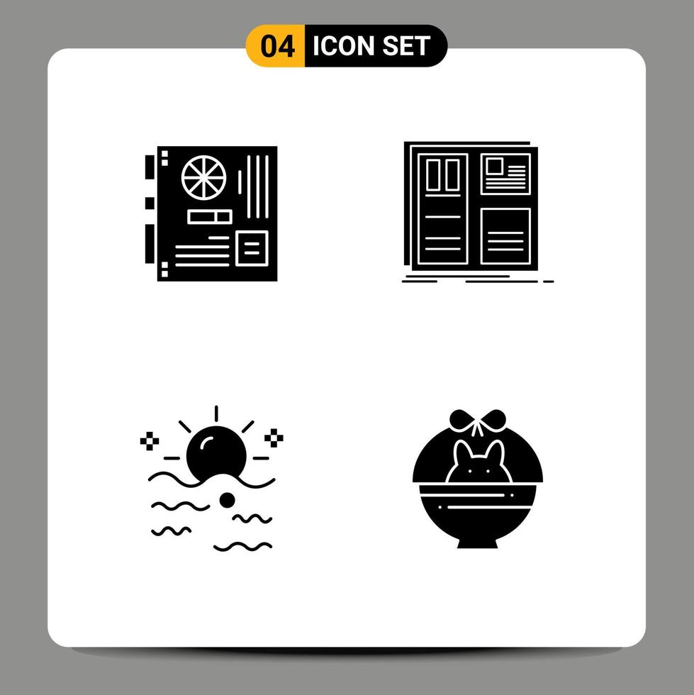 4 conjunto de glifos sólidos universales para aplicaciones web y móviles computadora ui rejilla madre cielo elementos de diseño vectorial editables vector