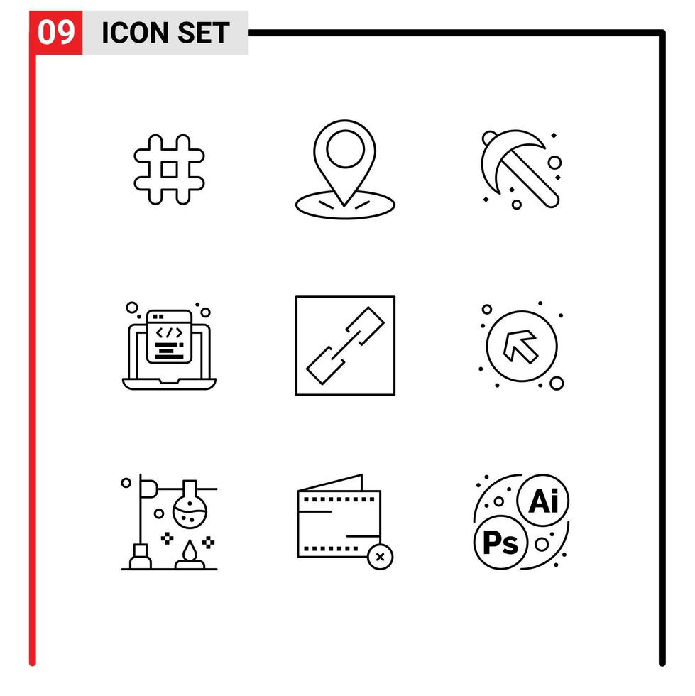 9 signos de esquema universales símbolos de conexión web jardinería programación html elementos de diseño vectorial editables vector