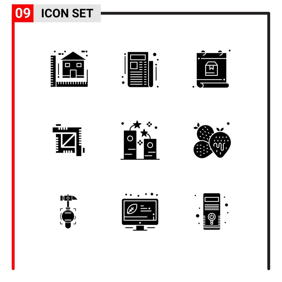 conjunto de pictogramas de 9 glifos sólidos simples de petardo editor gráfico calendario herramienta de diseño recortar elementos de diseño vectorial editables vector