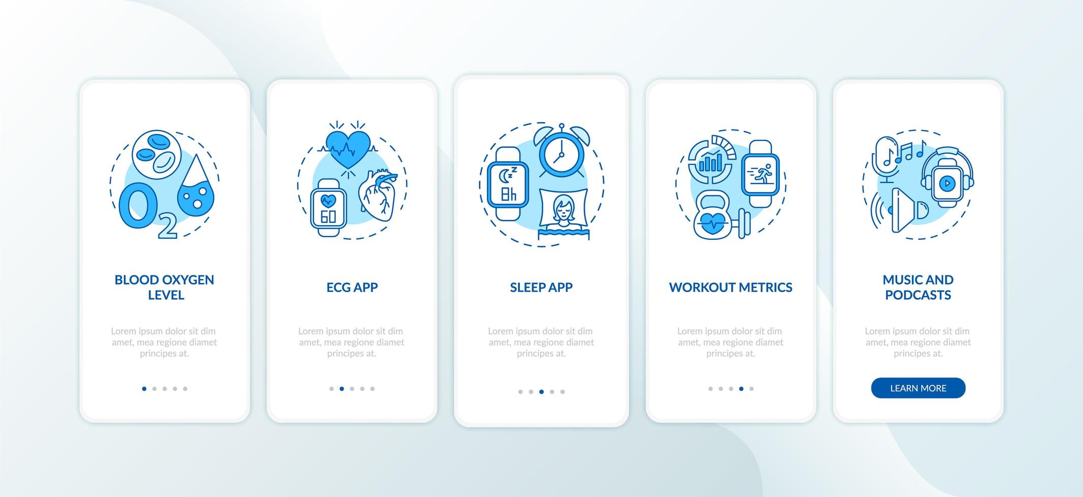 Funciones de reloj inteligente que incorporan la pantalla de la página de la aplicación móvil con conceptos Vector Pro