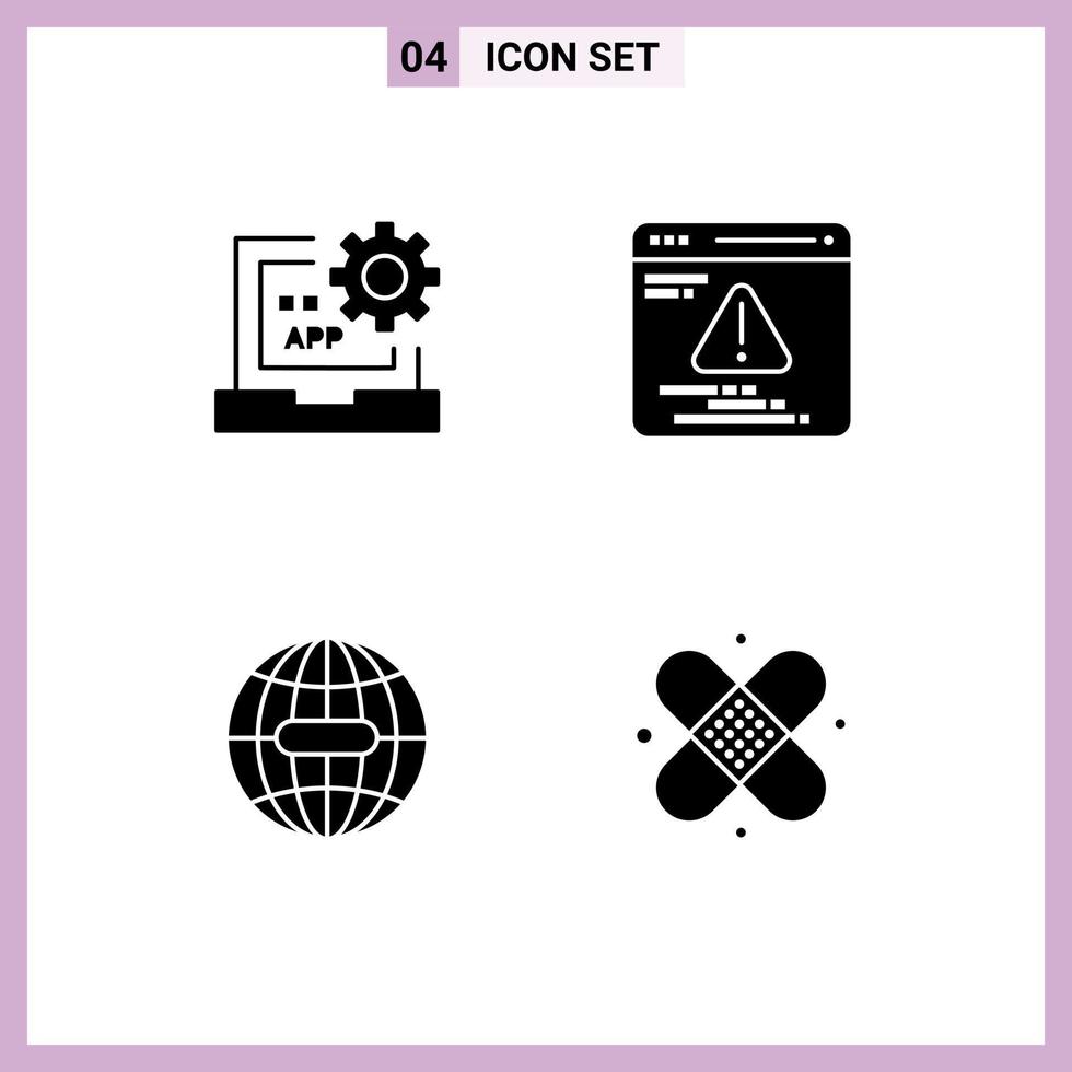 conjunto de 4 glifos sólidos vectoriales en cuadrícula para elementos de diseño vectorial editables de Internet web de desarrollo global de aplicaciones vector