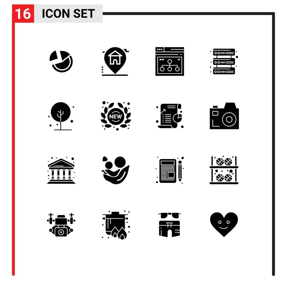 paquete de interfaz de usuario de 16 glifos sólidos básicos de servidores agrícolas base de datos inmobiliaria sitio web elementos de diseño vectorial editables vector