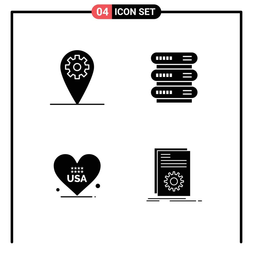 paquete de interfaz de usuario de 4 glifos sólidos básicos de elementos de diseño vectorial editables de código de almacenamiento informático estadounidense vector