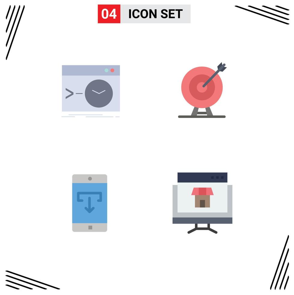 conjunto moderno de 4 iconos planos pictograma de elementos de diseño de vector editables de datos de dardo de software de objetivo de administración