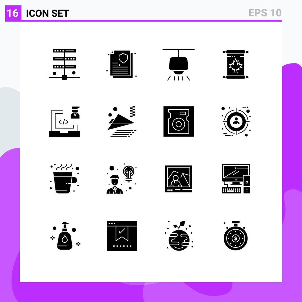 16 glifos sólidos universales establecidos para aplicaciones web y móviles portátiles desarrollar lámpara codificación canadá elementos de diseño vectorial editables vector