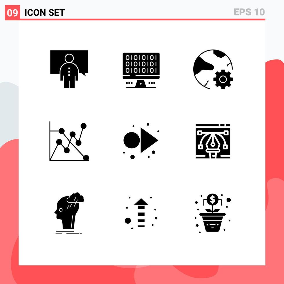 conjunto moderno de 9 pictogramas de glifos sólidos de elementos de diseño de vector editables de red de análisis de servidor de gráfico de flecha Vector Gratis