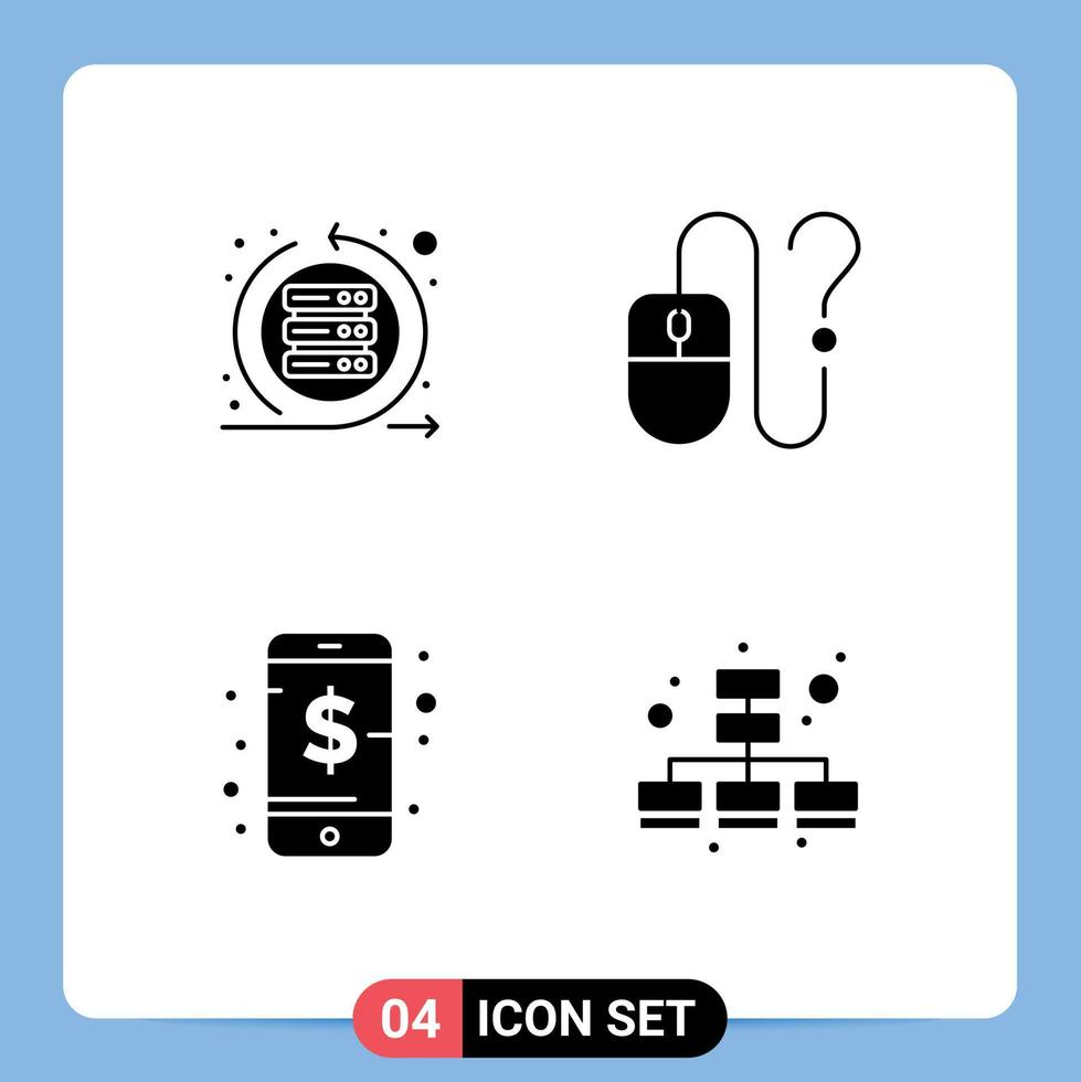 4 conjunto de glifos sólidos universales para aplicaciones web y móviles ágil gestión de contactos de sprint en línea elementos de diseño de vectores editables