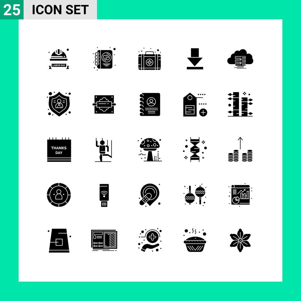conjunto moderno de 25 glifos y símbolos sólidos, como computación en la nube, escritura, descarga, flecha, elementos de diseño vectorial editables vector