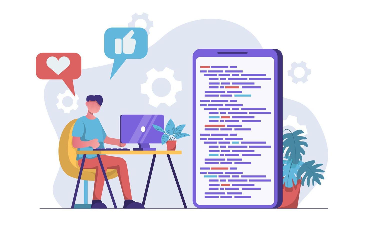 desarrollo de aplicaciones el programador crea aplicaciones para dispositivos. Vector Pro