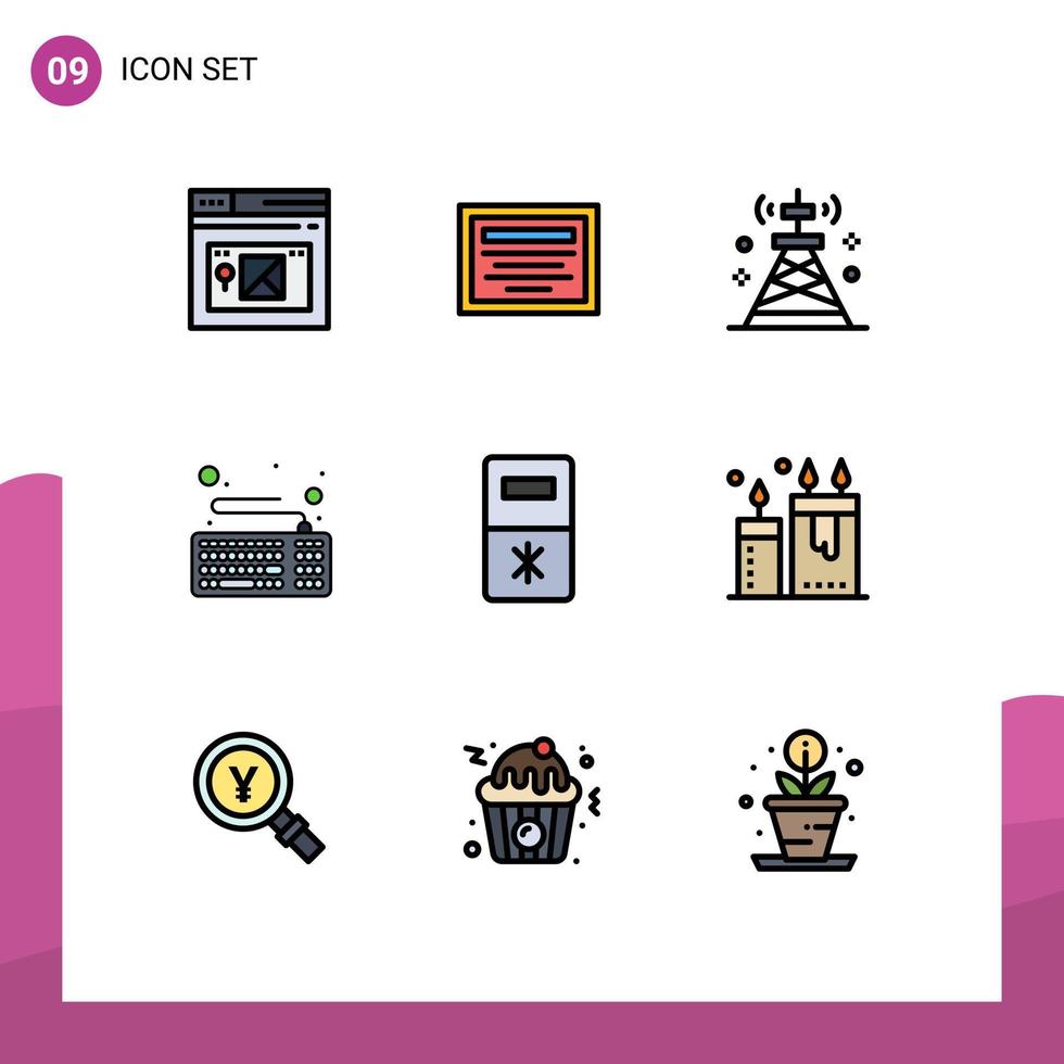 conjunto de 9 9 moderno ui íconos símbolos señales para cocina teclado red hardware computadora editable vector diseño elementos