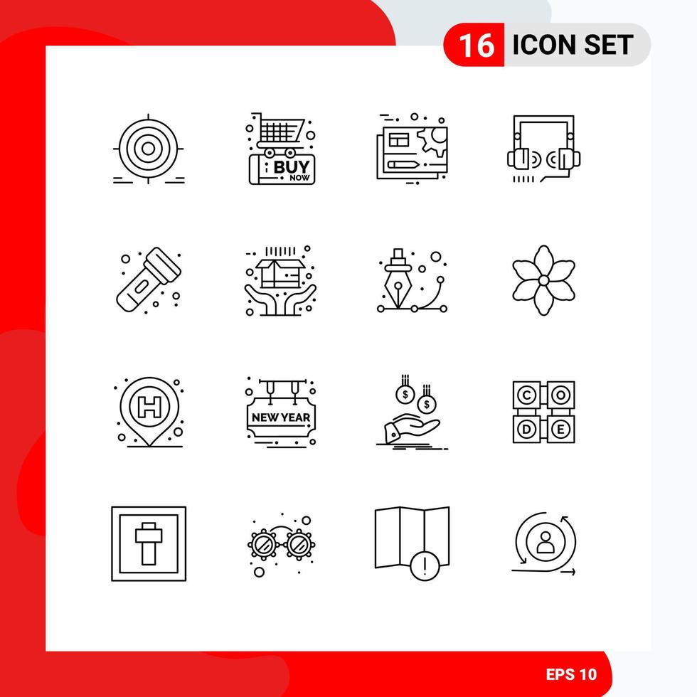 grupo de dieciséis contornos señales y símbolos para web mejoramiento compras auricular ajuste editable vector diseño elementos Vector Gratis