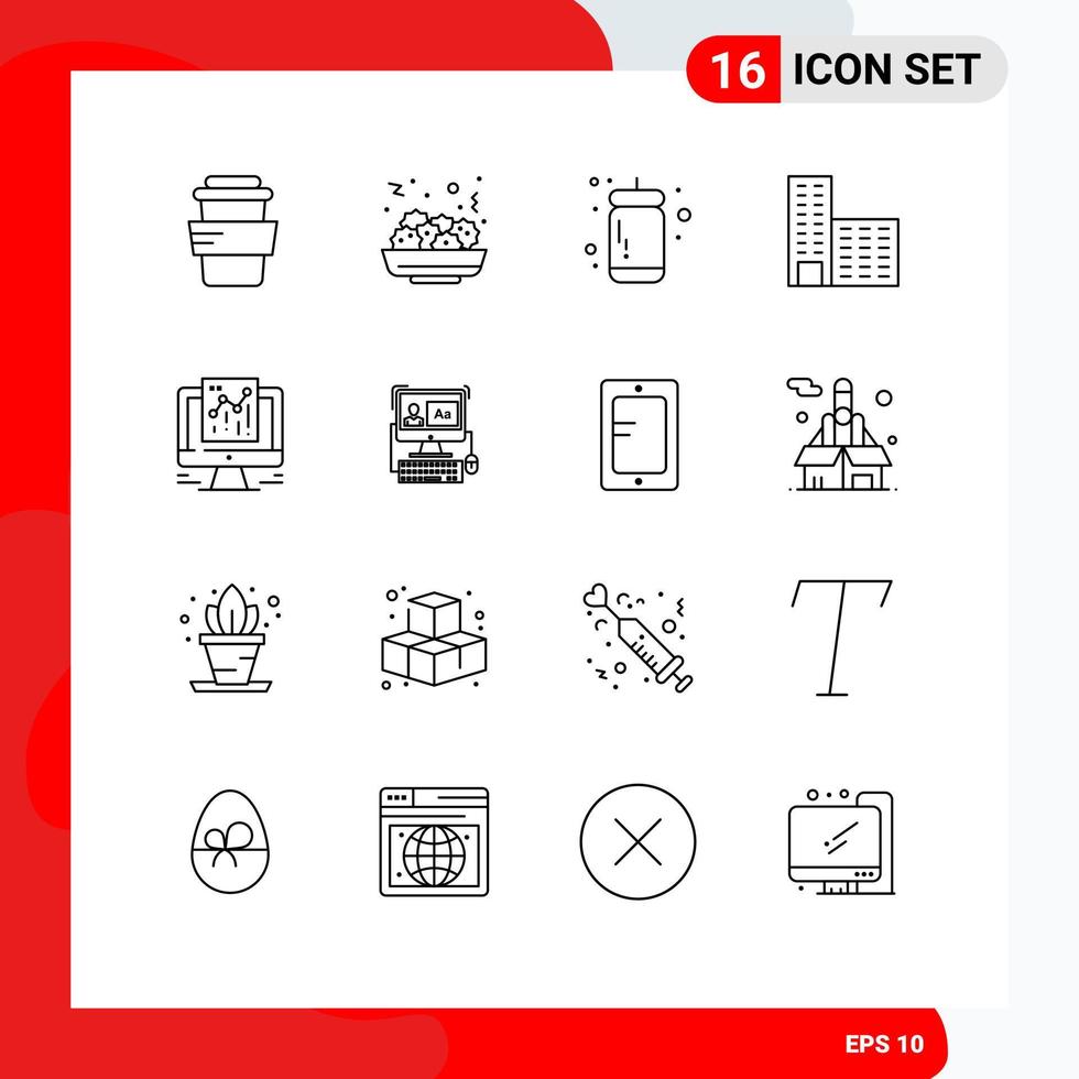 editable vector línea paquete de dieciséis sencillo contornos de computadora google salsa datos construcción editable vector diseño elementos