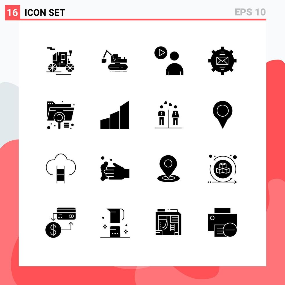conjunto de dieciséis vector sólido glifos en cuadrícula para datos correo jugar ayuda contacto editable vector diseño elementos
