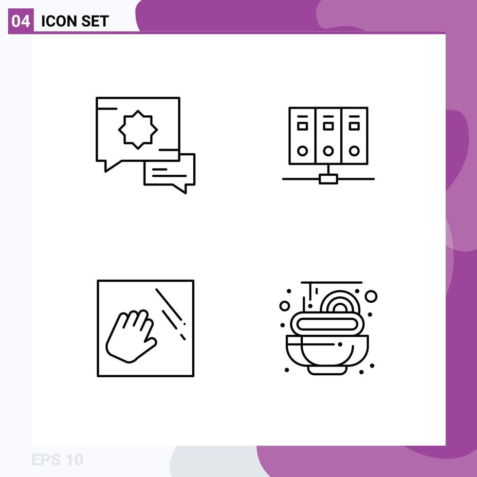 4 4 línea concepto para sitios web móvil y aplicaciones islámico mano computadora base de datos comida editable vector diseño elementos
