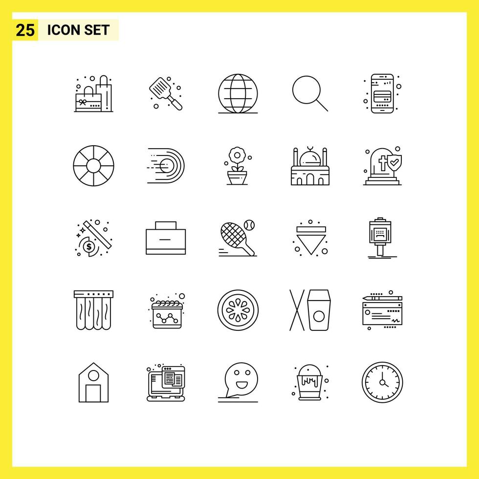 conjunto de 25 vector líneas en cuadrícula para tarjeta ui globo básico buscar editable vector diseño elementos