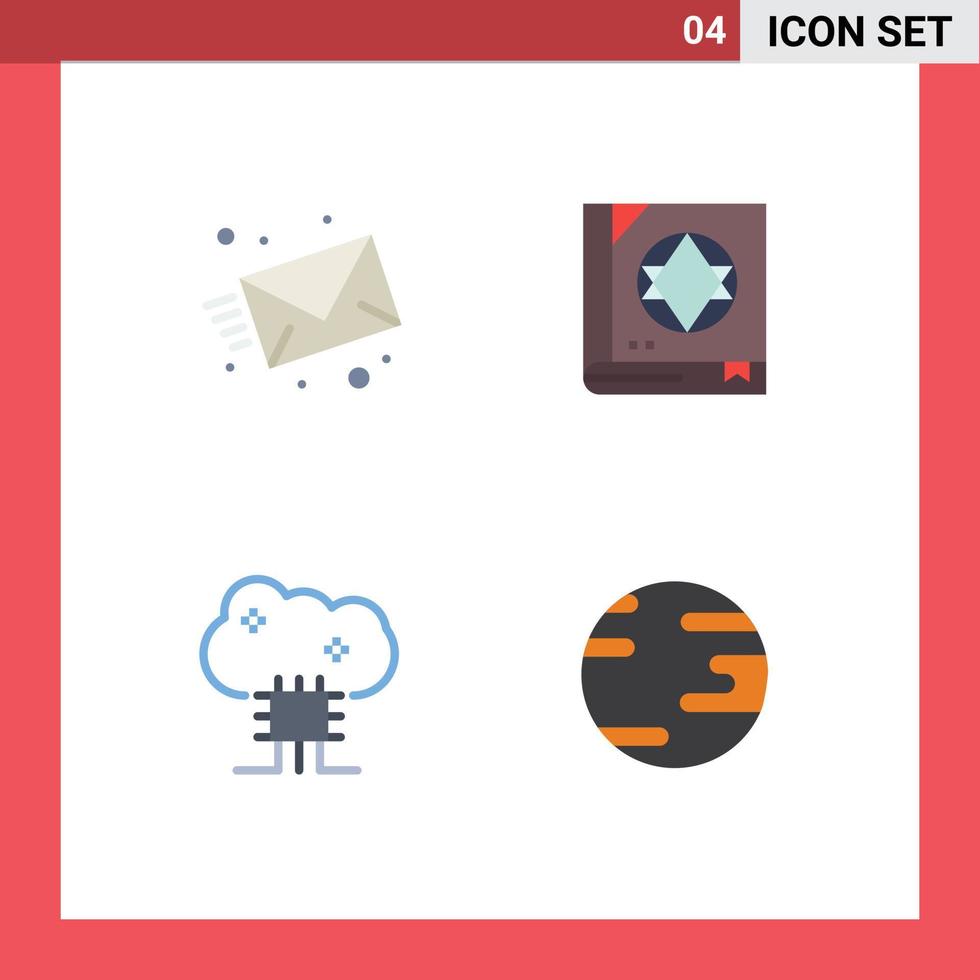 conjunto de 4 4 vector plano íconos en cuadrícula para correo electrónico nube base de datos web magia nube servidor editable vector diseño elementos