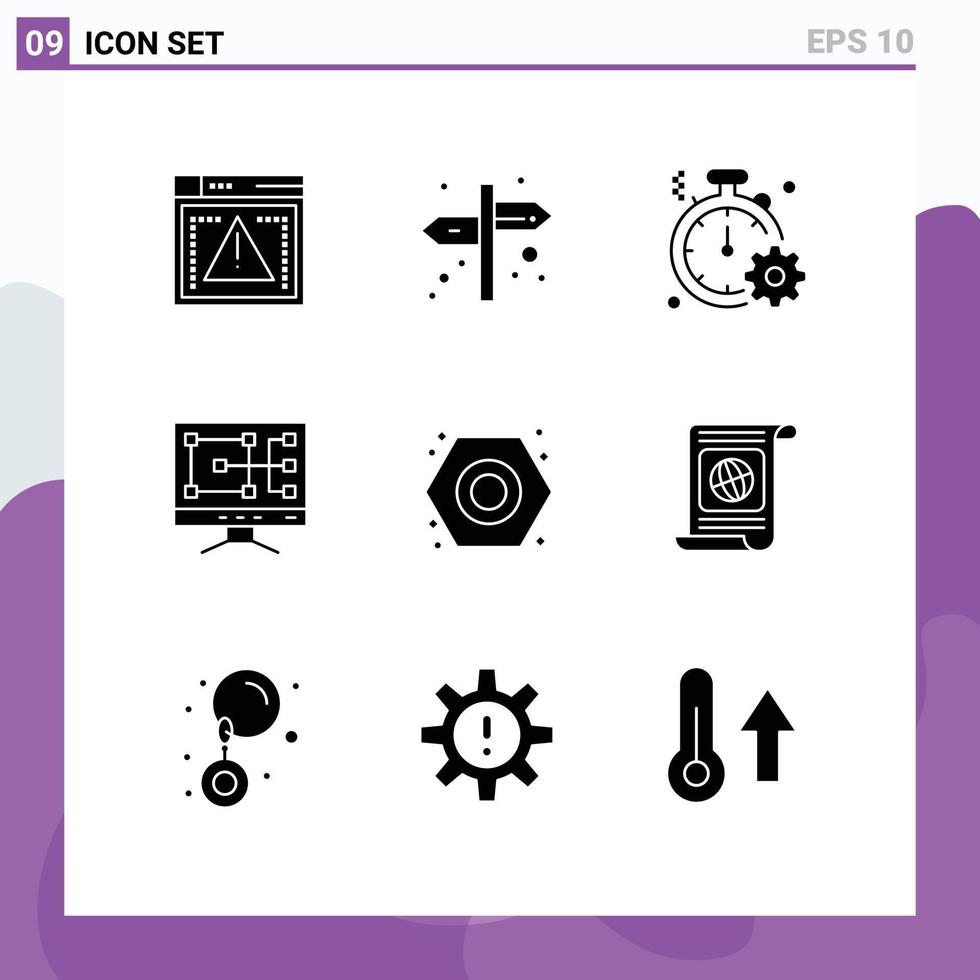 usuario interfaz paquete de 9 9 básico sólido glifos de fontanero mecánico reloj reparar computadora editable vector diseño elementos