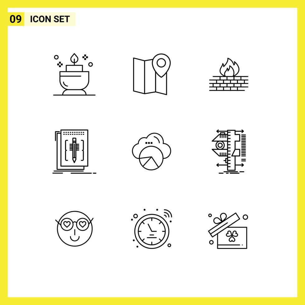 9 9 usuario interfaz contorno paquete de moderno señales y símbolos de informes idioma computadora editor código editable vector diseño elementos