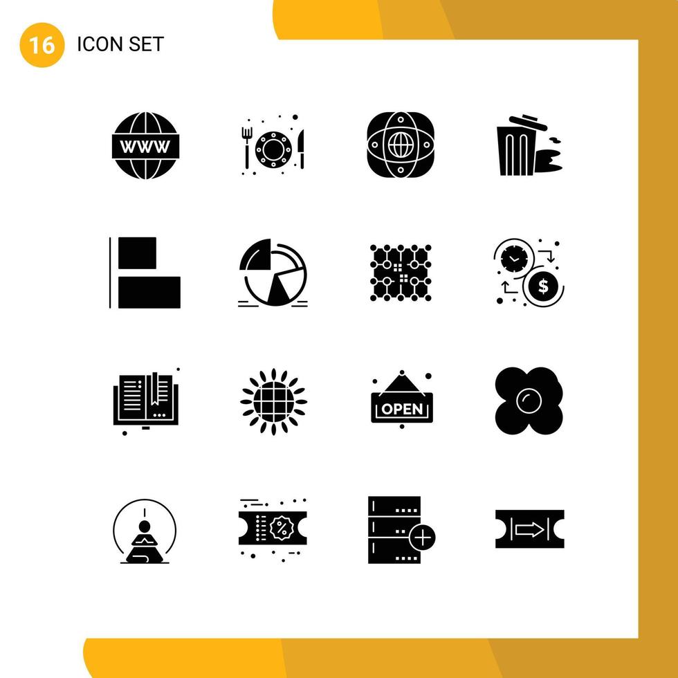 conjunto de dieciséis vector sólido glifos en cuadrícula para alinear contaminación artificial basura globo editable vector diseño elementos