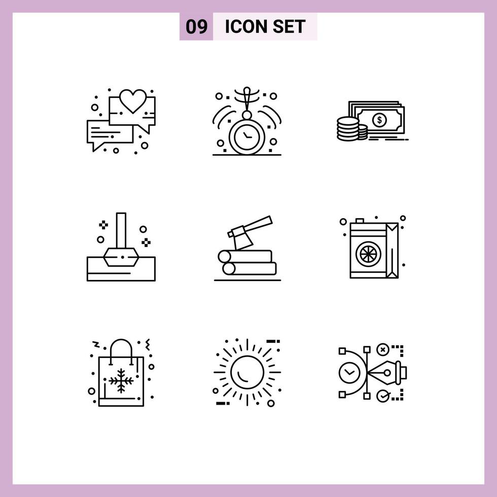 9 9 universal contornos conjunto para web y móvil aplicaciones madera Iniciar sesión inversión hacha bañera editable vector diseño elementos