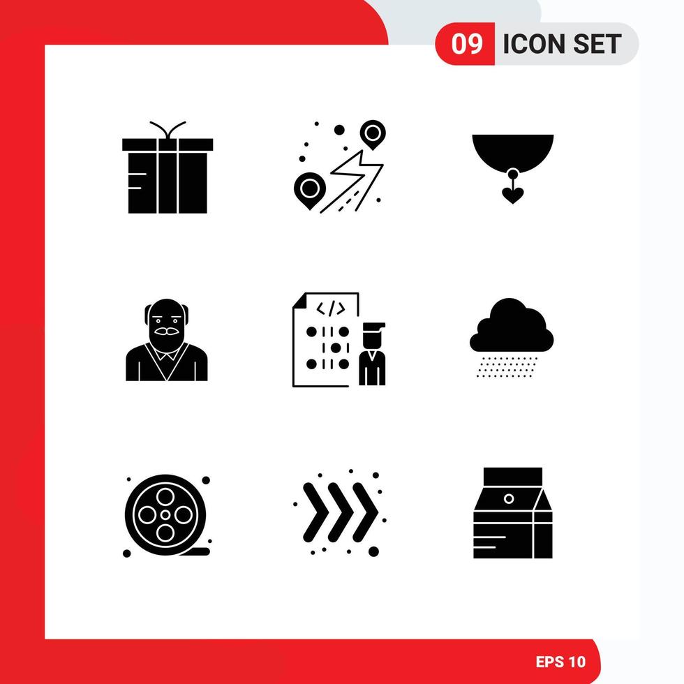 conjunto de 9 9 moderno ui íconos símbolos señales para desarrollo codificación collar tío padre editable vector diseño elementos