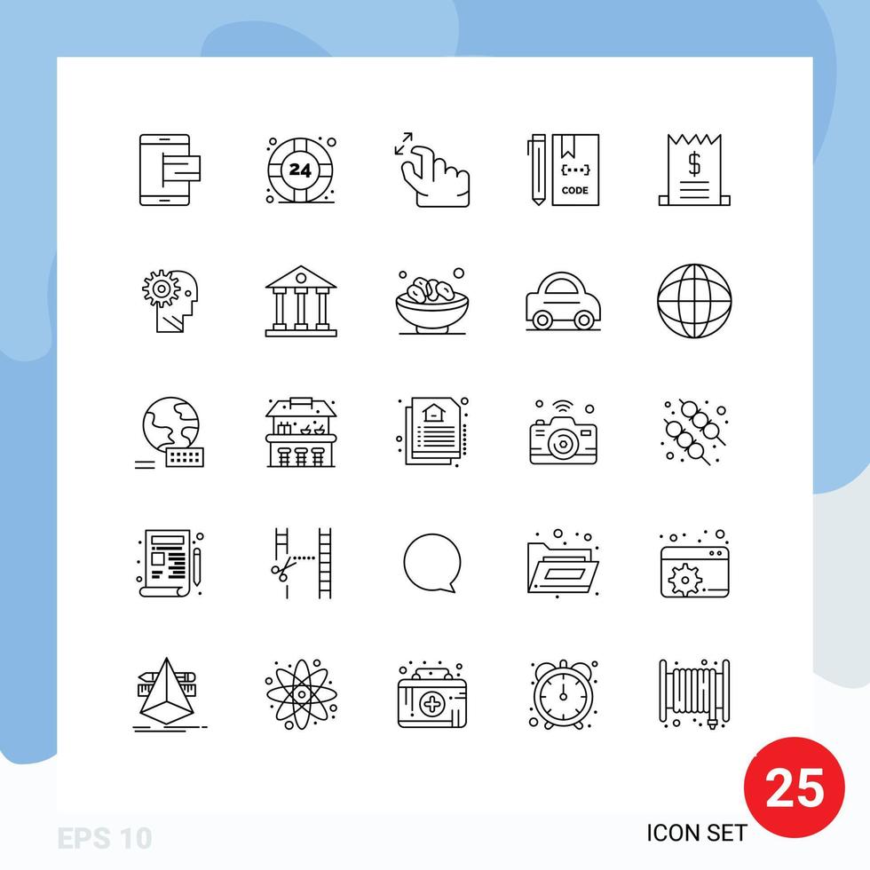 25 universal línea señales símbolos de archivo desarrollar ayuda escritorio codificación enfocar editable vector diseño elementos