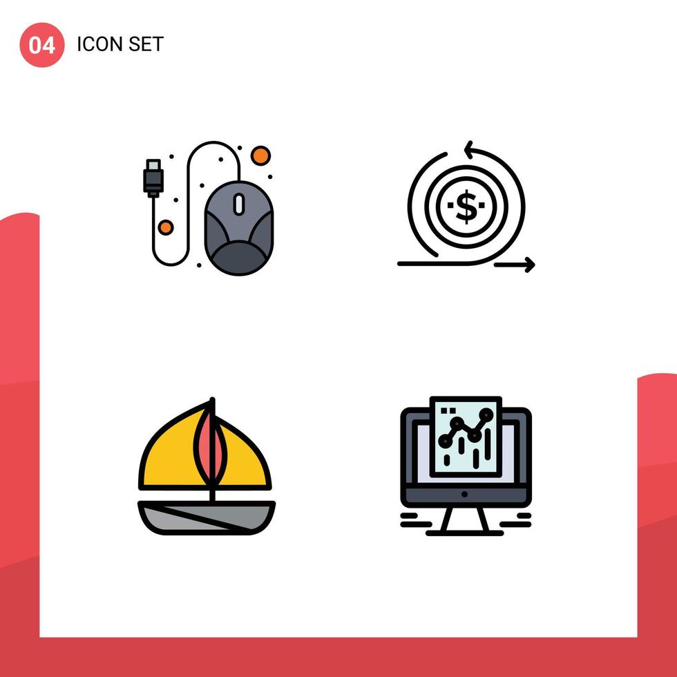 conjunto de 4 4 moderno ui íconos símbolos señales para computadora playa hardware moderno Embarcacion editable vector diseño elementos