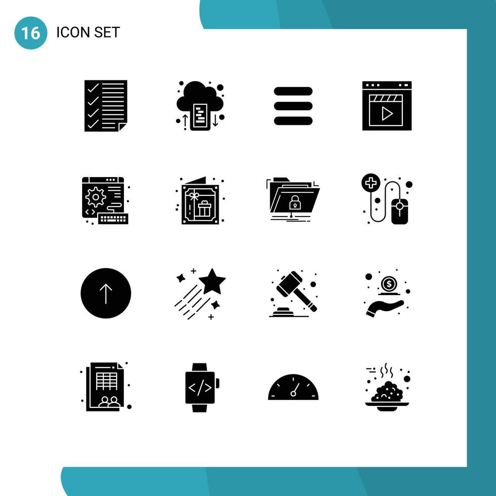 conjunto de dieciséis moderno ui íconos símbolos señales para digital interfaz subir película navegador editable vector diseño elementos