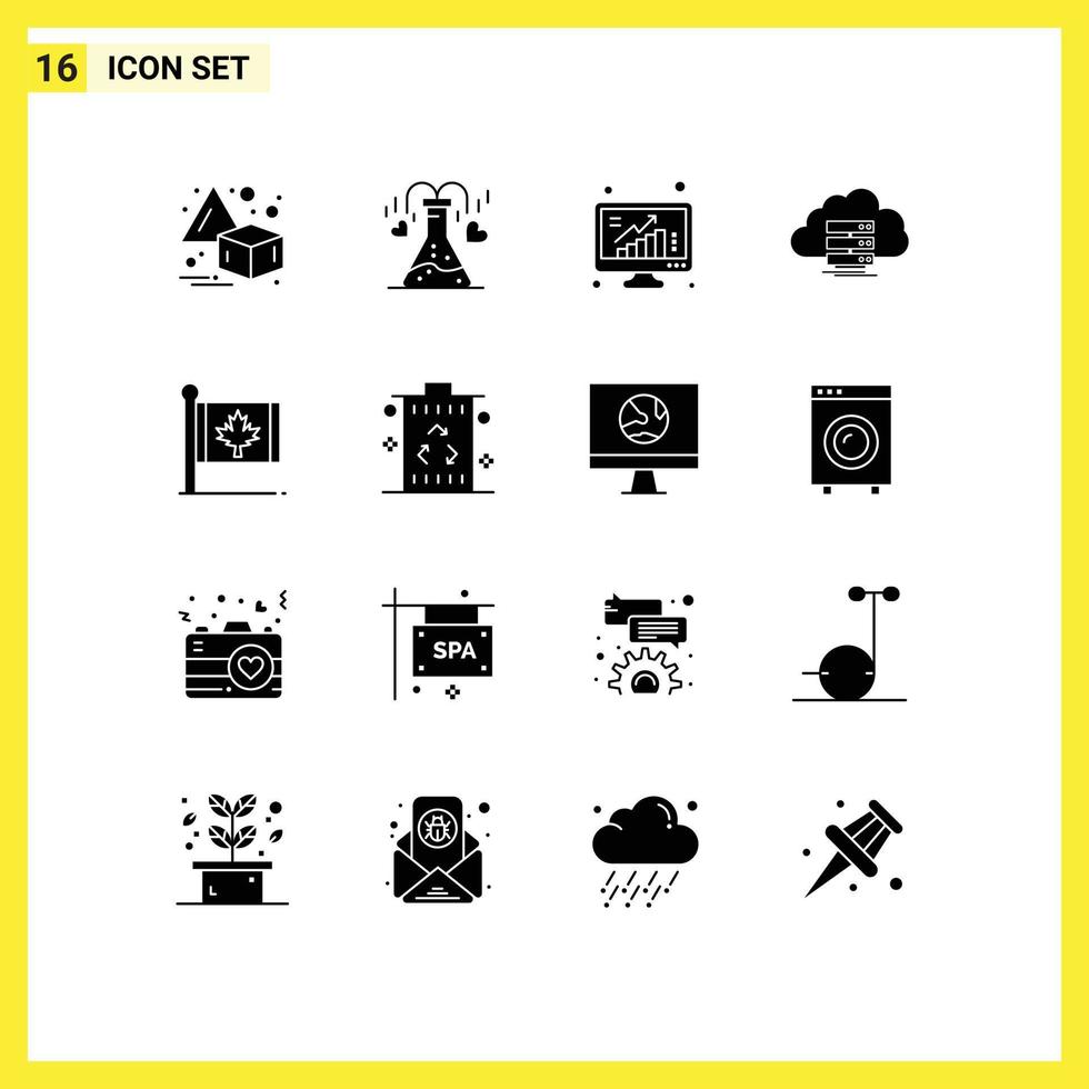 usuario interfaz paquete de dieciséis básico sólido glifos de bandera datos barras informática nube editable vector diseño elementos