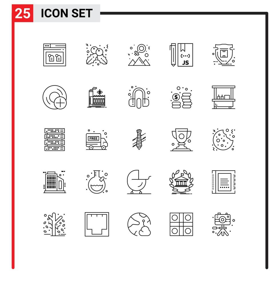 línea paquete de 25 universal símbolos de proteccion programación contento desarrollo codificación editable vector diseño elementos