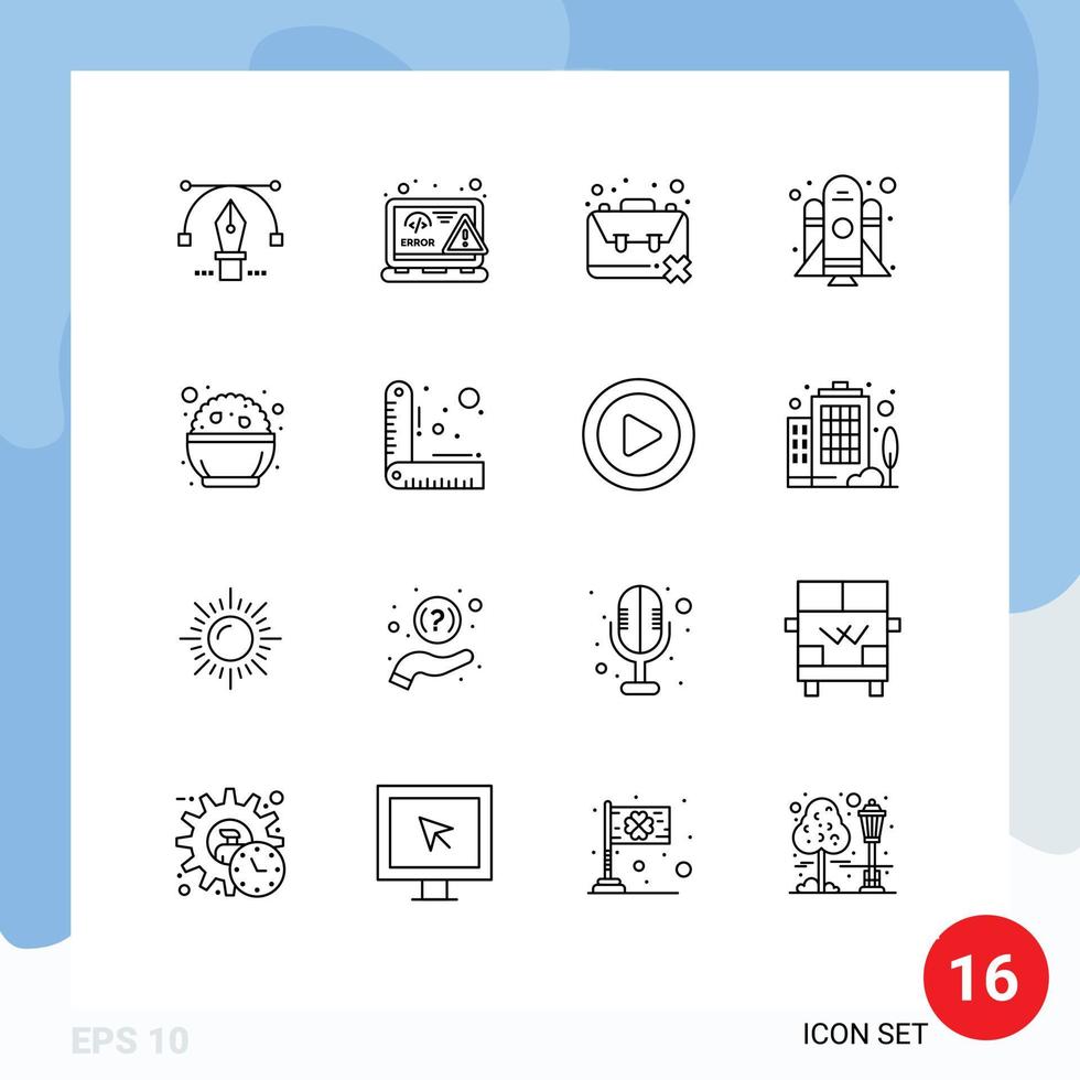 conjunto de dieciséis vector contornos en cuadrícula para comida astronave error cohete problema editable vector diseño elementos