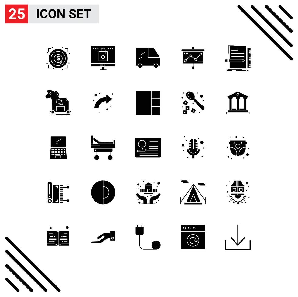 25 universal sólido glifos conjunto para web y móvil aplicaciones archivo código compras proyector presentación editable vector diseño elementos