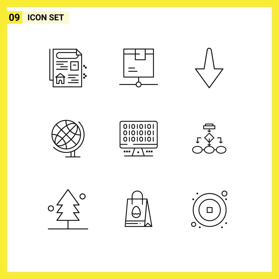 9 9 contorno concepto para sitios web móvil y aplicaciones diagrama de flujo informática flecha computadora globo editable vector diseño elementos