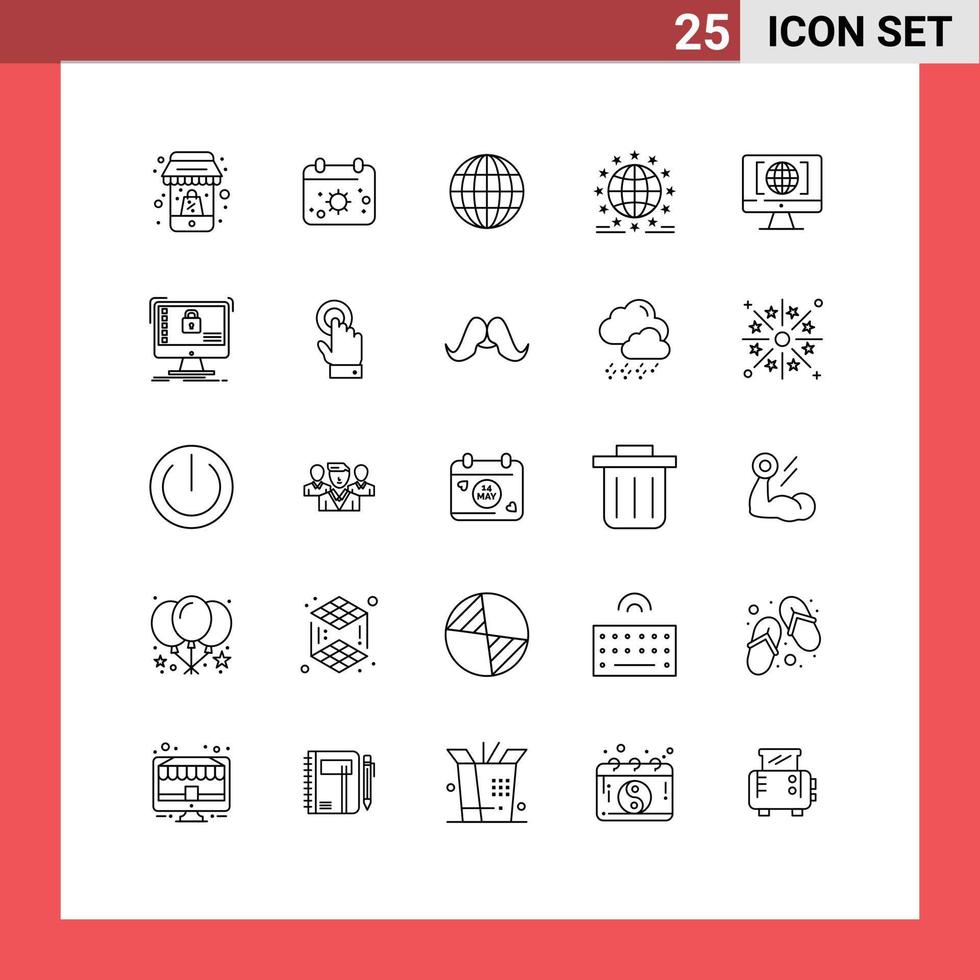 25 línea concepto para sitios web móvil y aplicaciones Internet en línea globo red global editable vector diseño elementos