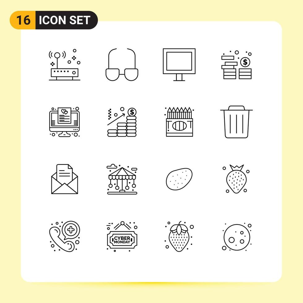 dieciséis universal contornos conjunto para web y móvil aplicaciones lista deseo lista eléctrico monedas inversión editable vector diseño elementos