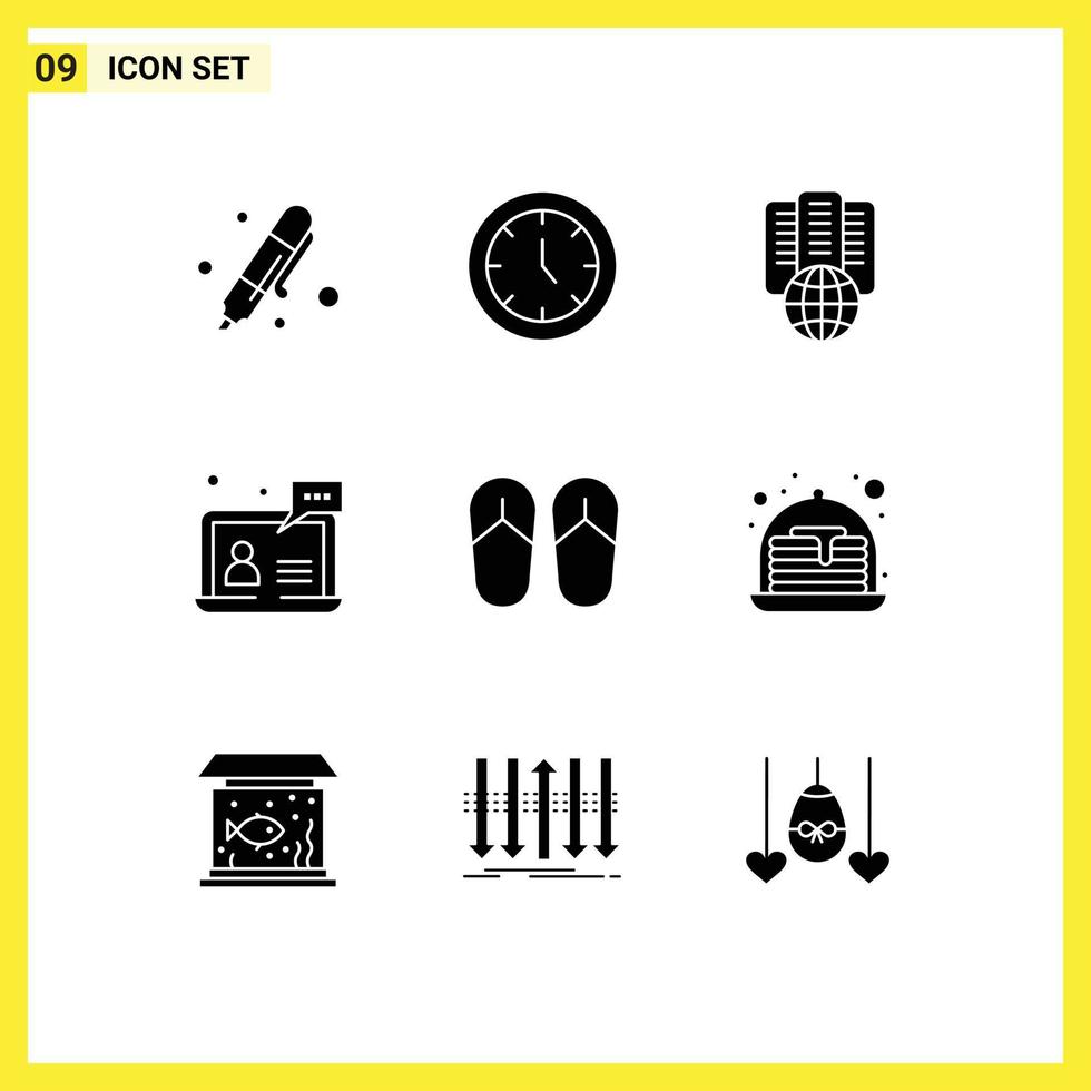 9 9 universal sólido glifos conjunto para web y móvil aplicaciones ayuda usuario hora charla servidor editable vector diseño elementos