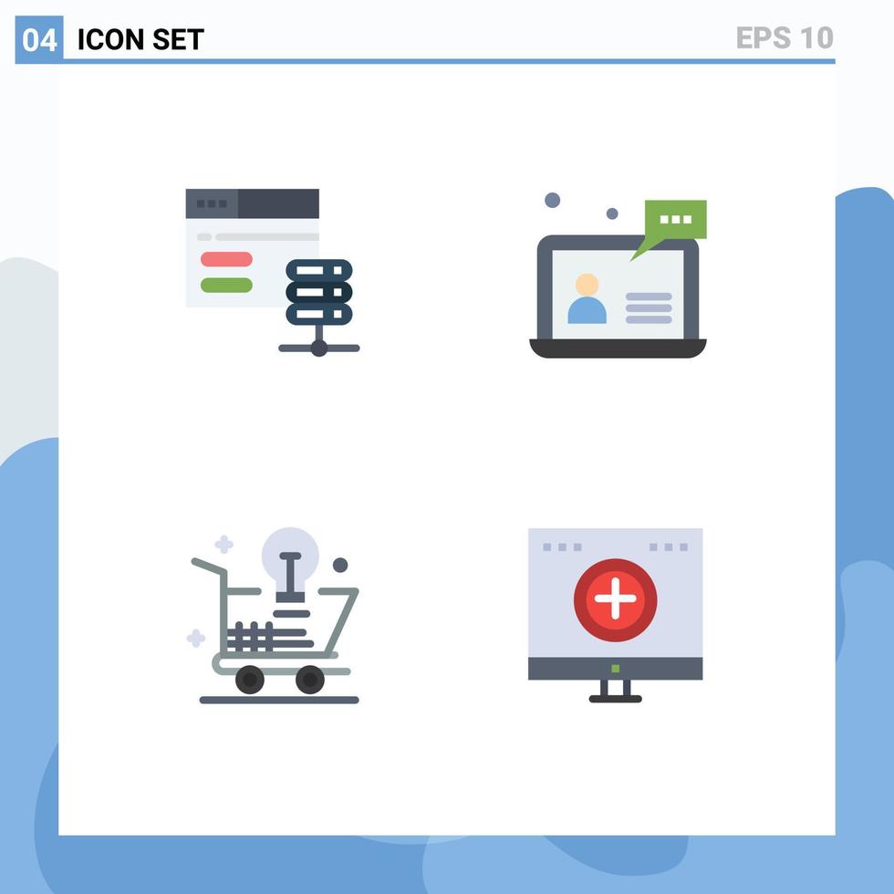 4 4 plano icono concepto para sitios web móvil y aplicaciones base de datos carro web usuario en línea editable vector diseño elementos