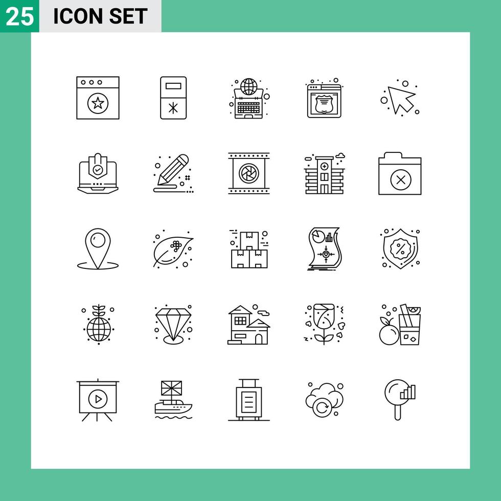grupo de 25 moderno líneas conjunto para izquierda flecha Internet web seguridad editable vector diseño elementos