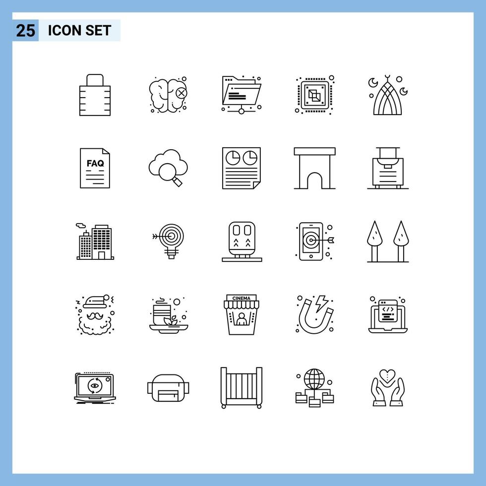 conjunto de 25 vector líneas en cuadrícula para mes procesador Internet Procesando chip editable vector diseño elementos
