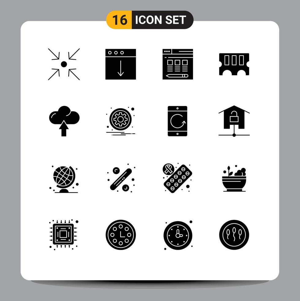 grupo de dieciséis moderno sólido glifos conjunto para circulo arriba servidor flecha RAM editable vector diseño elementos