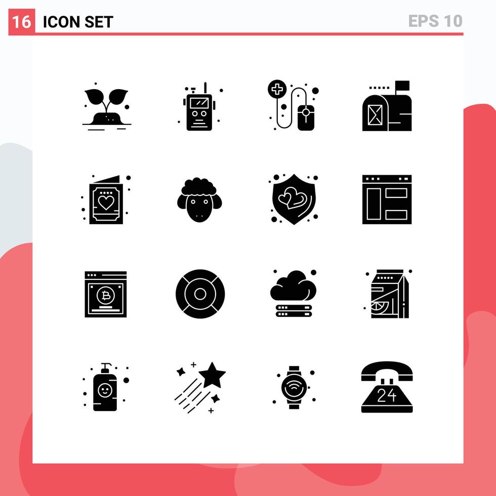 dieciséis universal sólido glifos conjunto para web y móvil aplicaciones invitación niño en línea tarjeta correo editable vector diseño elementos