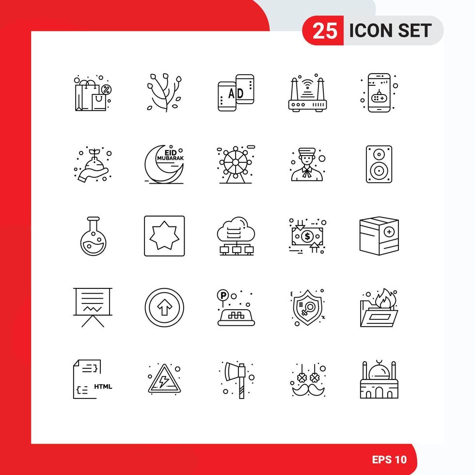 25 universal líneas conjunto para web y móvil aplicaciones aplicación cosas publicidad enrutador Internet editable vector diseño elementos