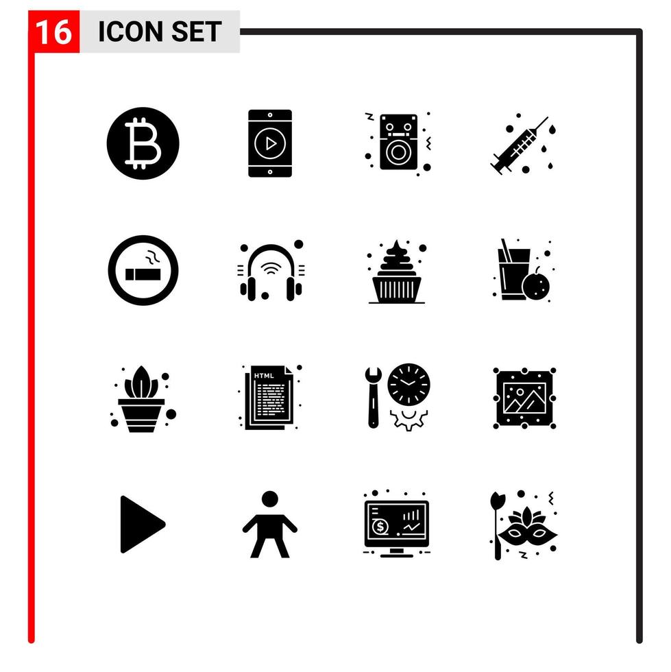 dieciséis universal sólido glifos conjunto para web y móvil aplicaciones mesa de ayuda Ciencias jugador laboratorio biología editable vector diseño elementos Vector Gratis