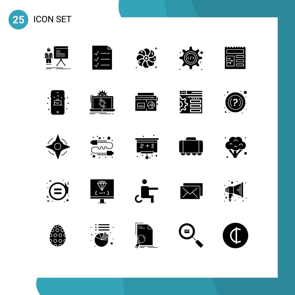 conjunto de 25 vector sólido glifos en cuadrícula para ui documento flor engranaje programación interfaz editable vector diseño elementos